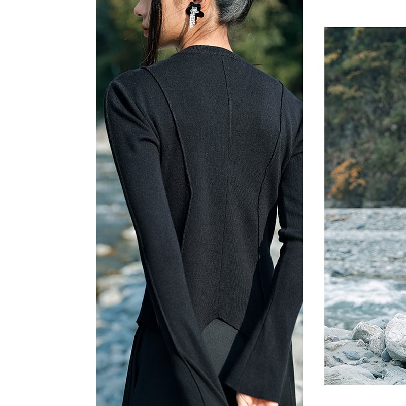 【大青龍肆シリーズ】★チャイナ風トップス★ ニットトップス デザイン性有り ブラック 黒い 合わせやすい