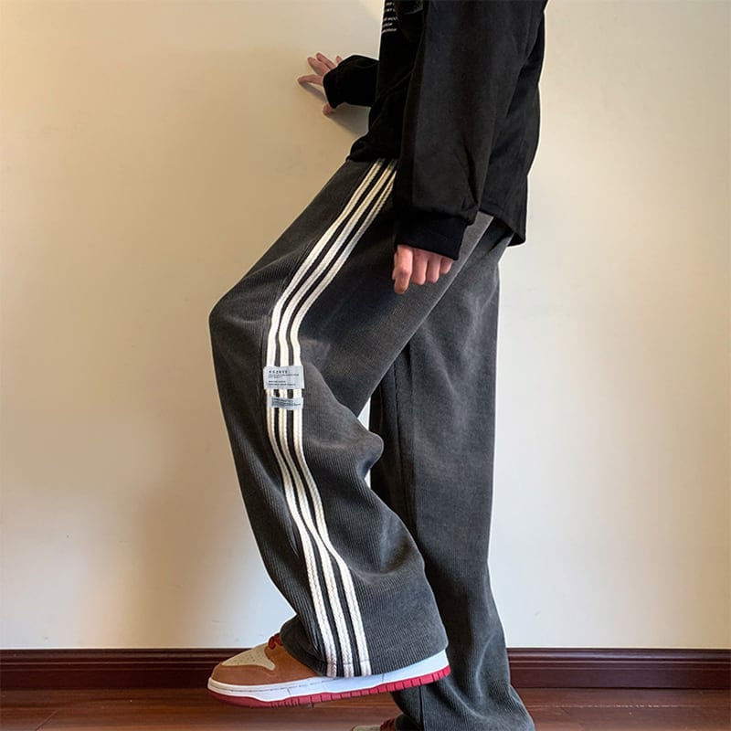 【V37シリーズ】★カジュアルパンツ★ 裏起毛 3color ズボン ボトムス 男女兼用 メンズ 大きいサイズ コーデュロイ 縦縞 縞模様