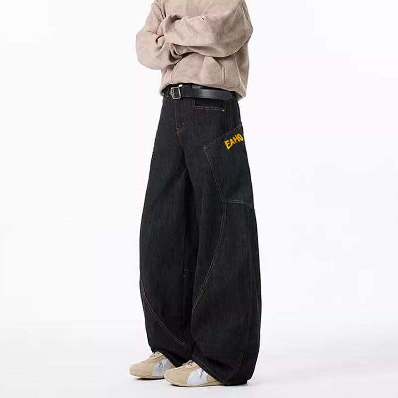 【Qotriockシリーズ】★ズボン★ デニムパンツ 切り替え カジュアルパンツ ボトムス 男女兼用 メンズ