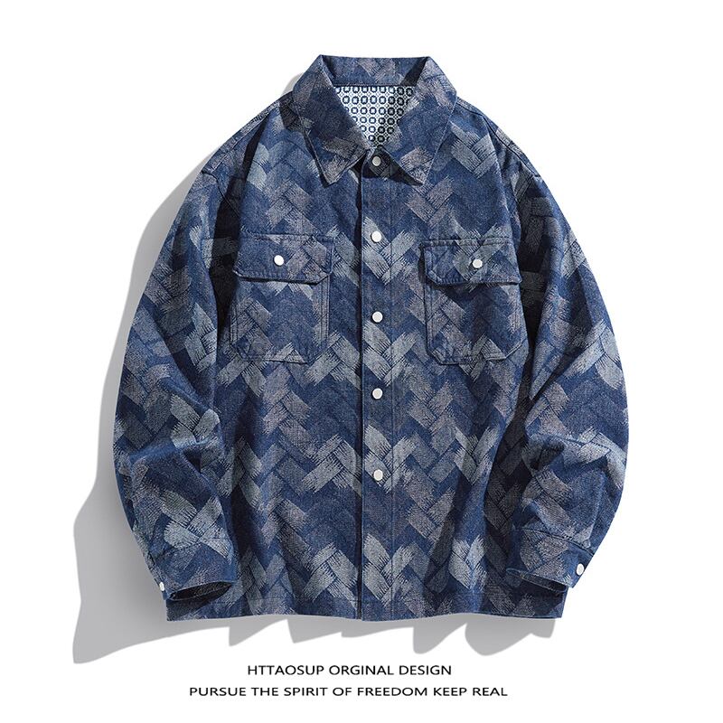 【NSBSシリーズ】★ジャケット★ 2color アウター デニムジャケット 男女兼用 メンズ プリント 黒 青