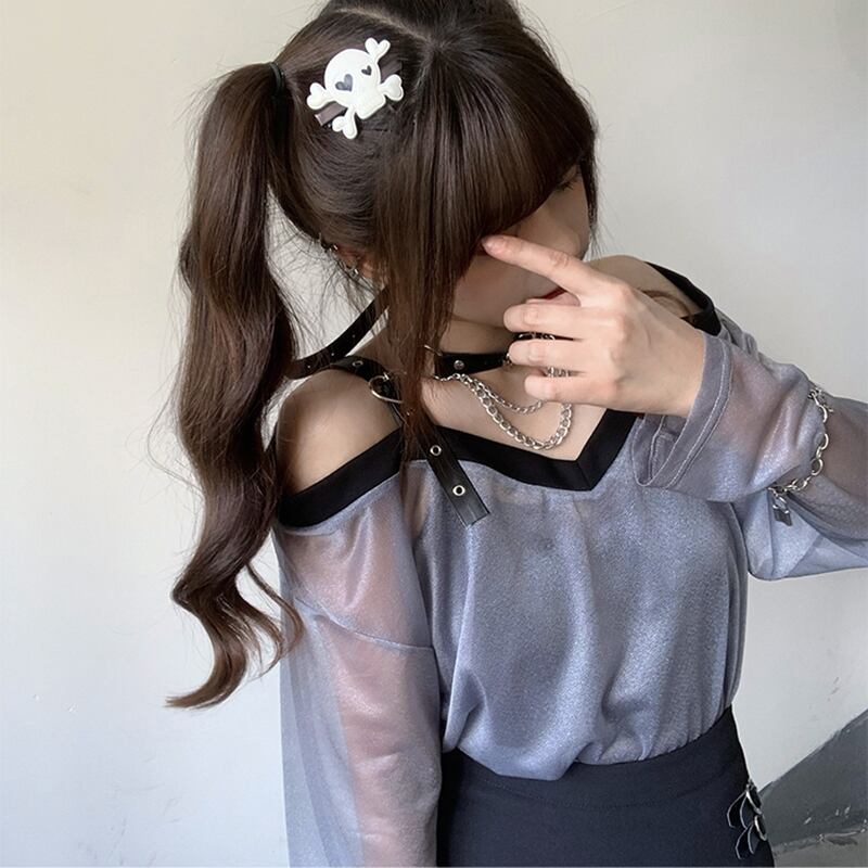 【XIYANGシリーズ】★トップス★ 透け感有り レディース ブラウス 肩出し Vネック オリジナル セクシー