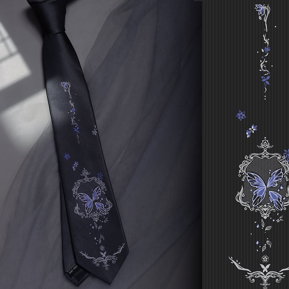 【霖悅君シリーズ】★ネクタイ★ 蝶々柄 小物 飾り物 メンズ レディース 男女兼用 レトロ ブラック 黒い かっこいい