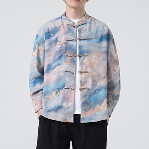 【JUNYIシリーズ】★チャイナ風トップス★ 2color アウター 男女兼用 メンズ 油絵風 ブルー レッド